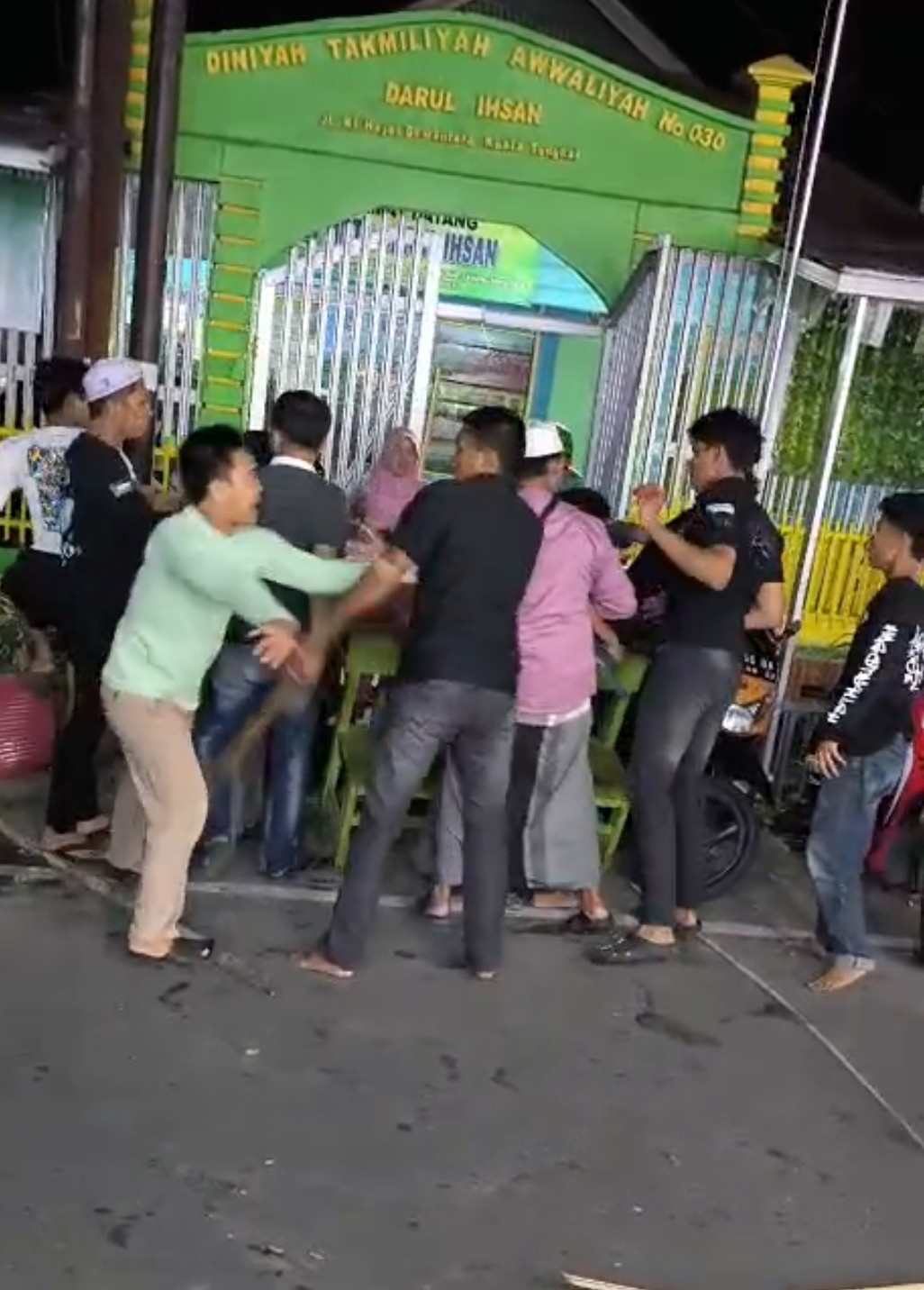 Dalam video itu terdengar suara riuh dan terlihat saling memisahkan dan saling serang satu dengan yang lainnya.