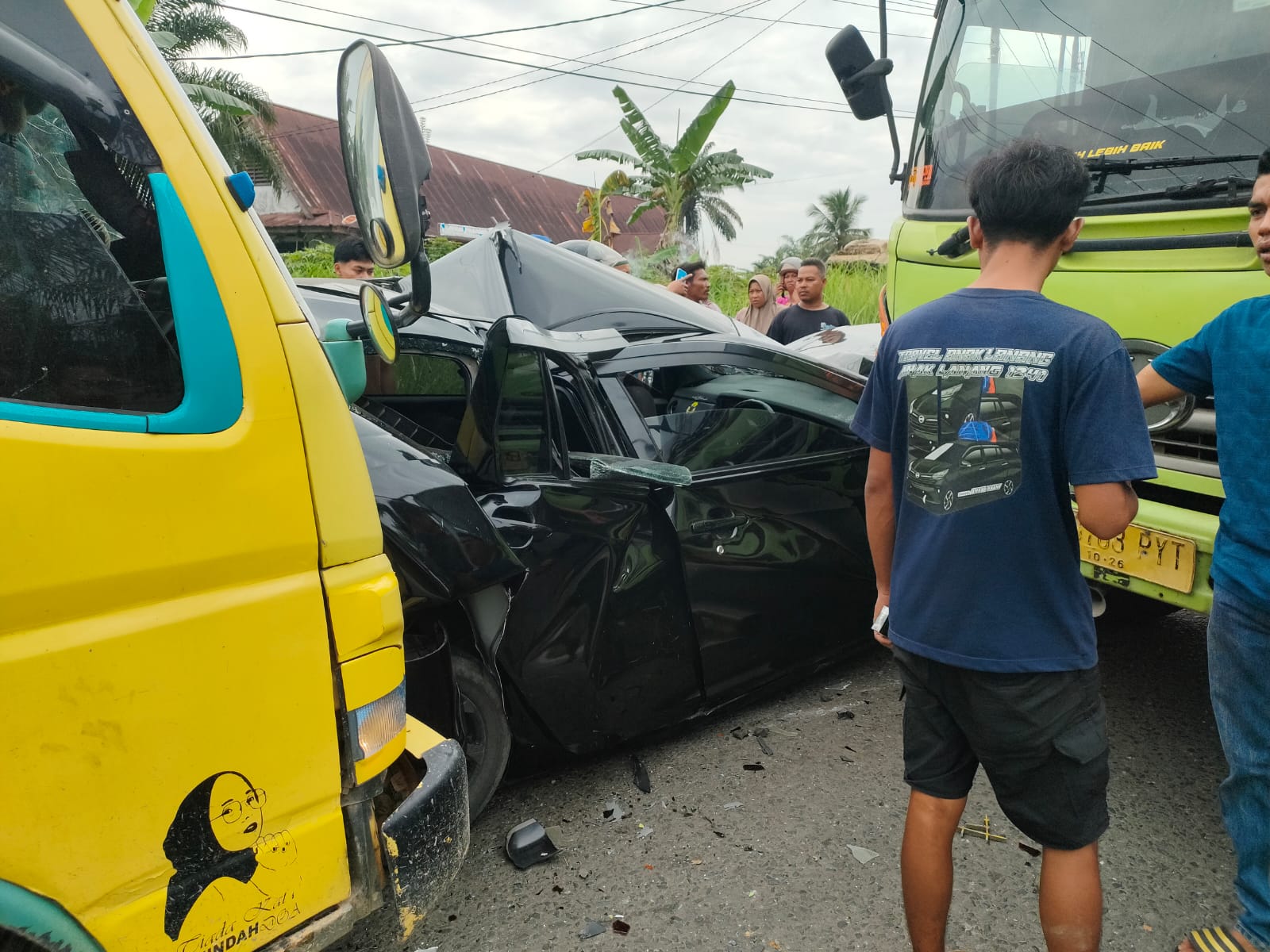 SEARAH.CO — Tabrakan beruntun di Jalan Lintas Timur KM 120, Kelurahan Merlung, Kecamatan Merlung, Kabupaten Tanjung Jabung Barat (Tanjabbar) mobil minibus ringsek, kapolsek tegaskan tidak ada korban jiawa.