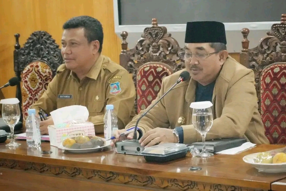 SEARAH.CO – Bupati Tanjung Jabung Barat, Drs. H. Anwar Sadat, M.Ag. didampingi Wakil Bupati Tanjung Jabung Barat, Dr. H. Katamso, S.A., S.E., M.E., memimpin rapat penyusunan Rancangan Anggaran Pendapatan dan Belanja Daerah Kabupaten Tanjung Jabung Barat Tahun Anggaran 2026 di Pola Utama Kantor Bupati, Senin (06/10).