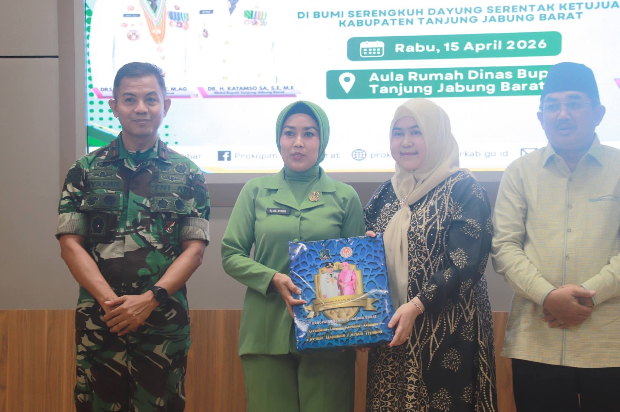 Sementara itu, Danrem 042/Gapu Brigjen TNI Nyamin menyampaikan terima kasih atas sambutan hangat dari Pemerintah Kabupaten Tanjung Jabung Barat. Ia menekankan pentingnya peran kepala daerah dalam mendukung percepatan program strategis nasional, salah satunya pembentukan Koperasi Desa/Kelurahan Merah Putih (KDKMP).