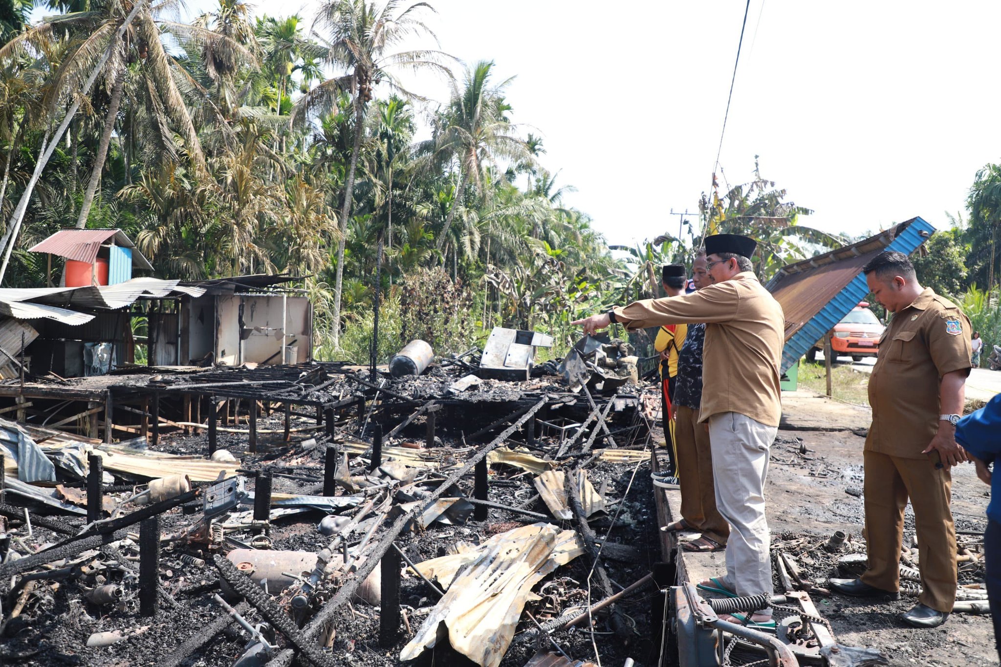 SEARAH.CO – Musibah kebakaran yang terjadi di RT. 05 Desa Teluk Kulbi, Kecamatan Betara, sekitar pukul 12.15 WIB pada Selasa siang (26/8) langsung mendapat perhatian dari Bupati Tanjab Barat, Drs. H. Anwar Sadat, M.Ag. Meski baru selesai melaksanakan kunjungan kerja di UPTD Balai Latihan Kerja (BLK) dan UPTD KIR di Kecamatan Betara, Bupati segera melanjutkan kegiatan untuk meninjau langsung lokasi kebakaran.