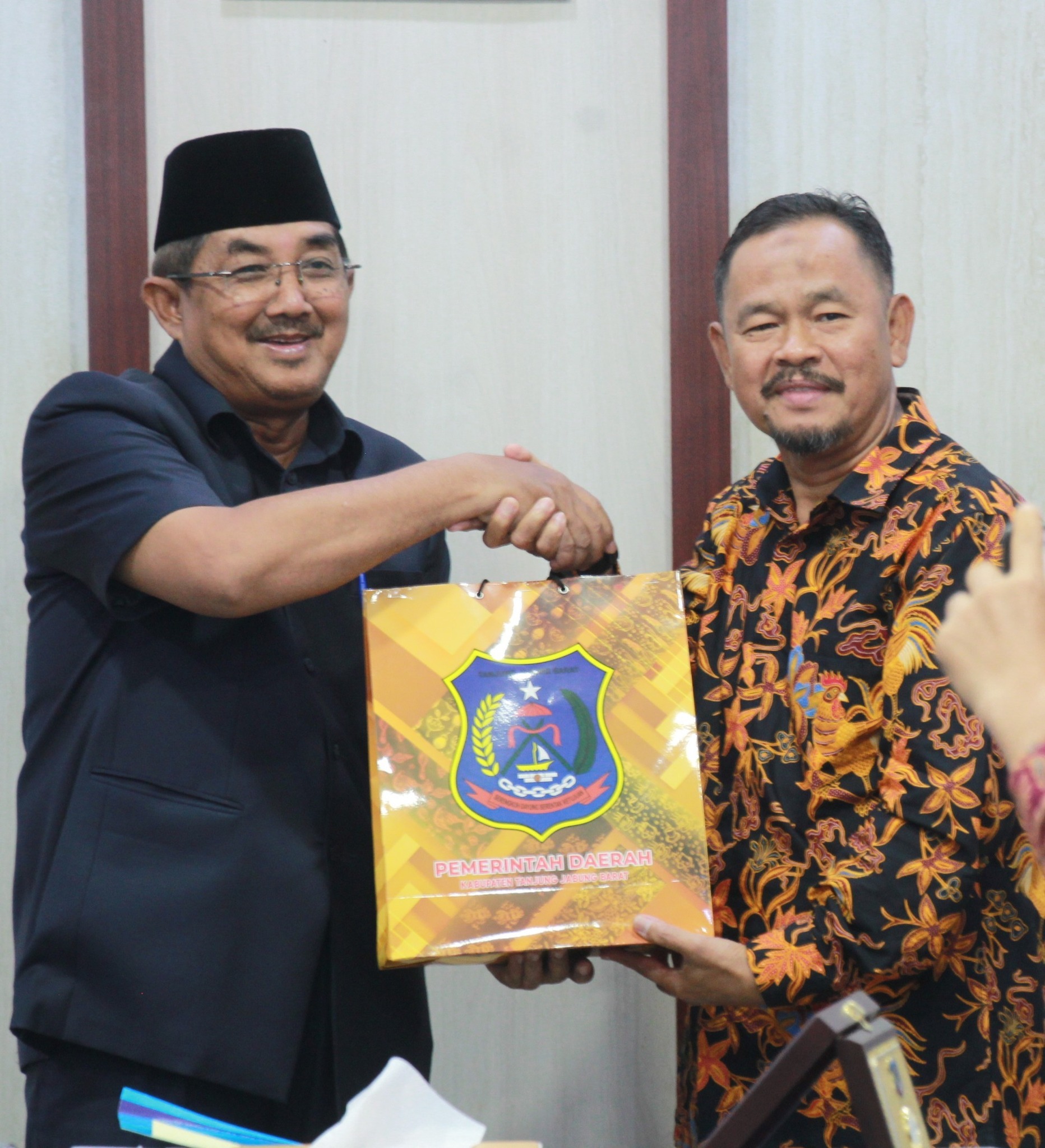 SEARAH.CO – Bupati Tanjung Jabung Barat, Drs. H. Anwar Sadat, M.Ag., menerima audiensi sekaligus silaturahmi Kepala Balai Bahasa Provinsi Jambi, Drs. Muhammad Muis, M.Hum bersama tim, terkait sosialisasi Peraturan Menteri Pendidikan Dasar dan Menengah Nomor 2 Tahun 2025 tentang Pedoman Pengawasan Penggunaan Bahasa Indonesia, di Ruang Rapat Bupati, Rabu (27/08).