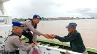 Ditpolairud Polda Jambi Bagikan Sembako Kepada Nelayan dan Penambang Ketek di Kota Jambi