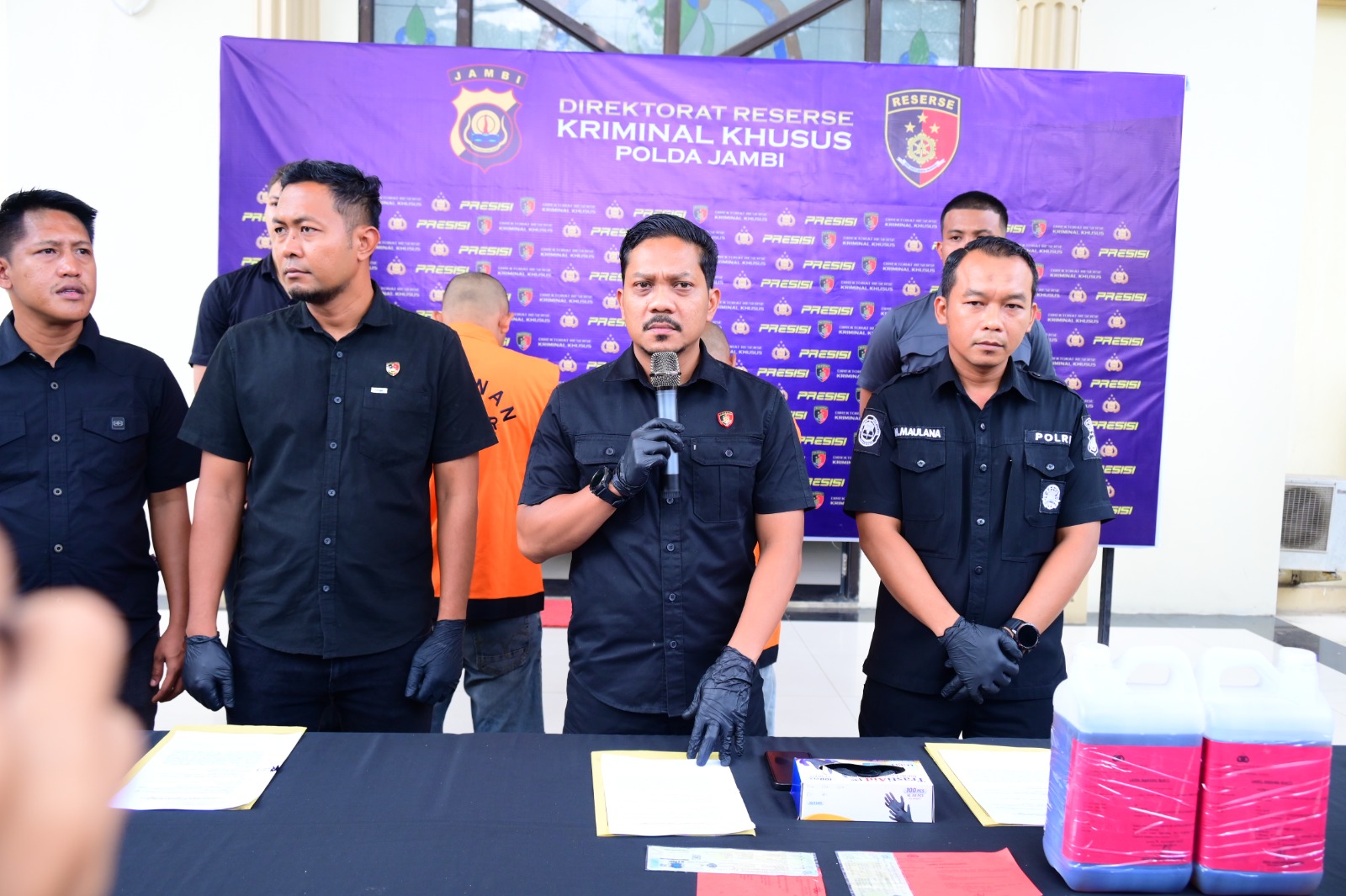 SEARAH.CO — Direktorat Reserse Kriminal Khusus Polda Jambi menggelar konferensi pers terkait ungkap kasus dugaan tindak pidana di bidang Migas, yang disampaikan oleh Kasubdit IV Tipidter Ditreskrimsus Polda Jambi, Kompol Adi Handoko, Selasa (04/11/2025).