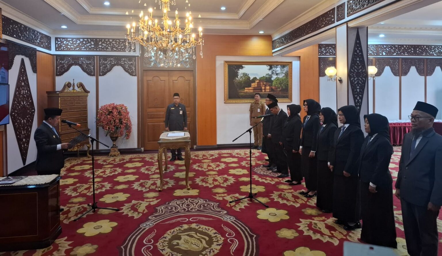Pelantikan diawali dengan pembacaan Surat Keputusan (SK) Gubernur Jambi, dilanjutkan pengambilan sumpah/janji jabatan yang dipandu rohaniwan sesuai agama masing-masing, serta penandatanganan berita acara pelantikan.