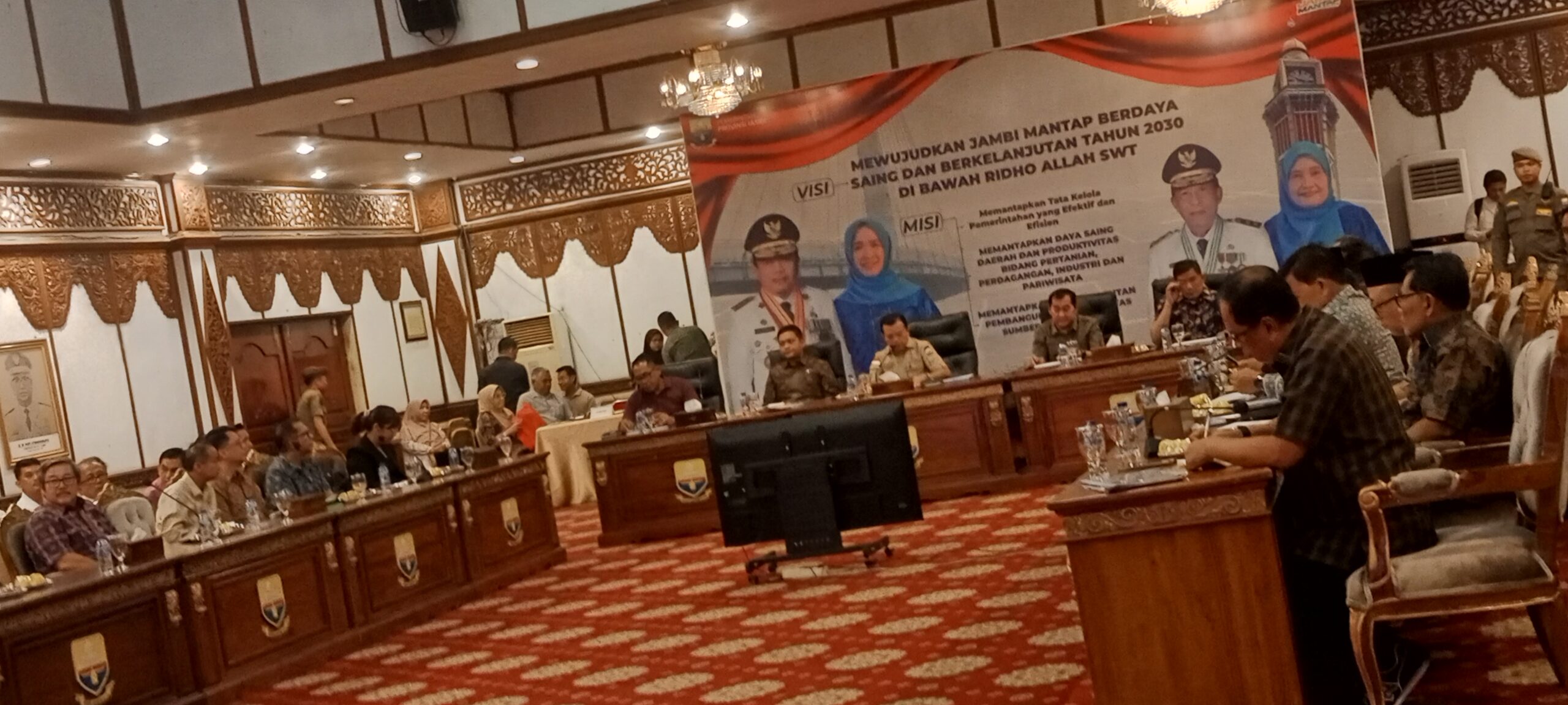 SEARAH.CO- Ketua DPRD Provinsi Jambi M Hafiz Fattah menghadiri rapat evaluasi pembangunan jalur khusus batubara, yang berlangsung di Rumah Dinas Gubernur Jambi, Senin (26/1/2026) malam.