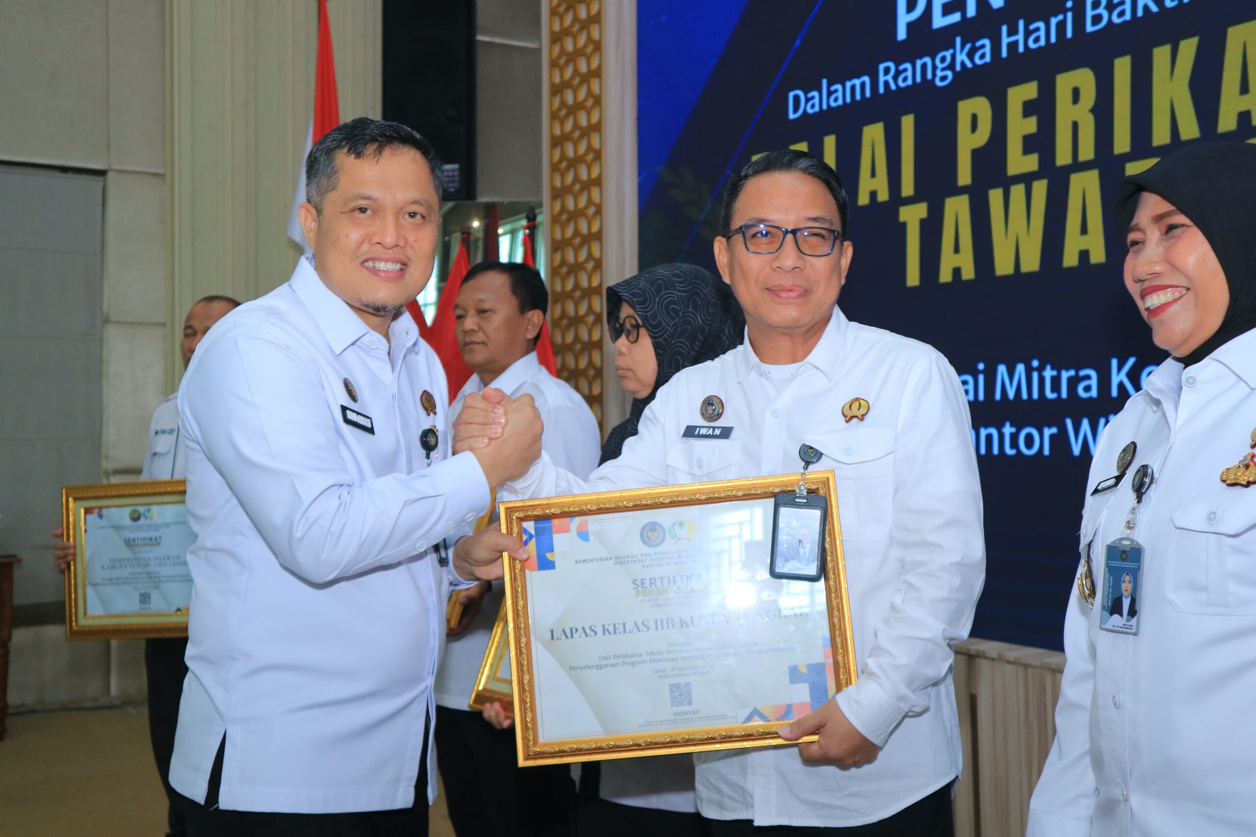 Penghargaan ini diterima langsung oleh Kepala Lapas (Kalapas) Kuala Tungkal, Iwan Darmawan, dari Kepala Kantor Wilayah (Kakanwil) Direktorat Jenderal Pemasyarakatan Jambi, Hidayat, dalam acara tasyakuran Hari Bakti Kementerian Imigrasi dan Pemasyarakatan Ke-1, Rabu (19/11/2025).