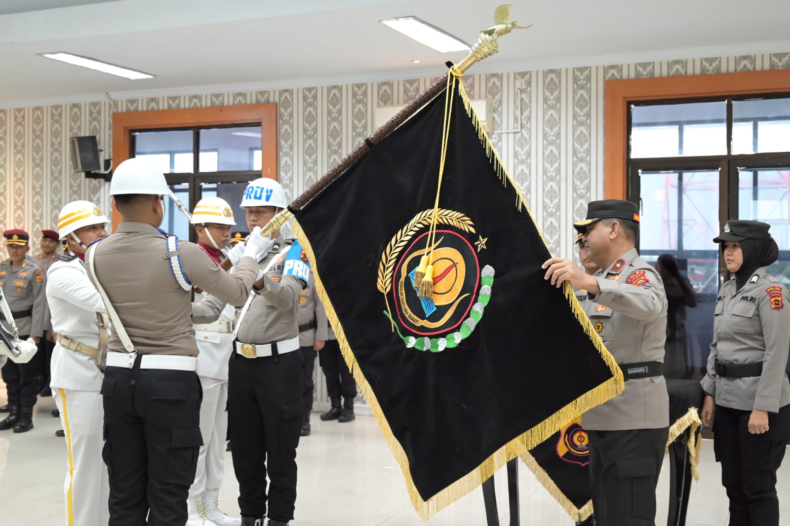 Kegiatan yang dilaksanakan pada hari Rabu, (18/06/2025), di Aula Lantai 4 Mapolda Jambi tersebut dipimpin oleh Wakapolda Jambi, Brigjen Pol. M. Mustaqim, yang bertindak sebagai Inspektur Upacara.
