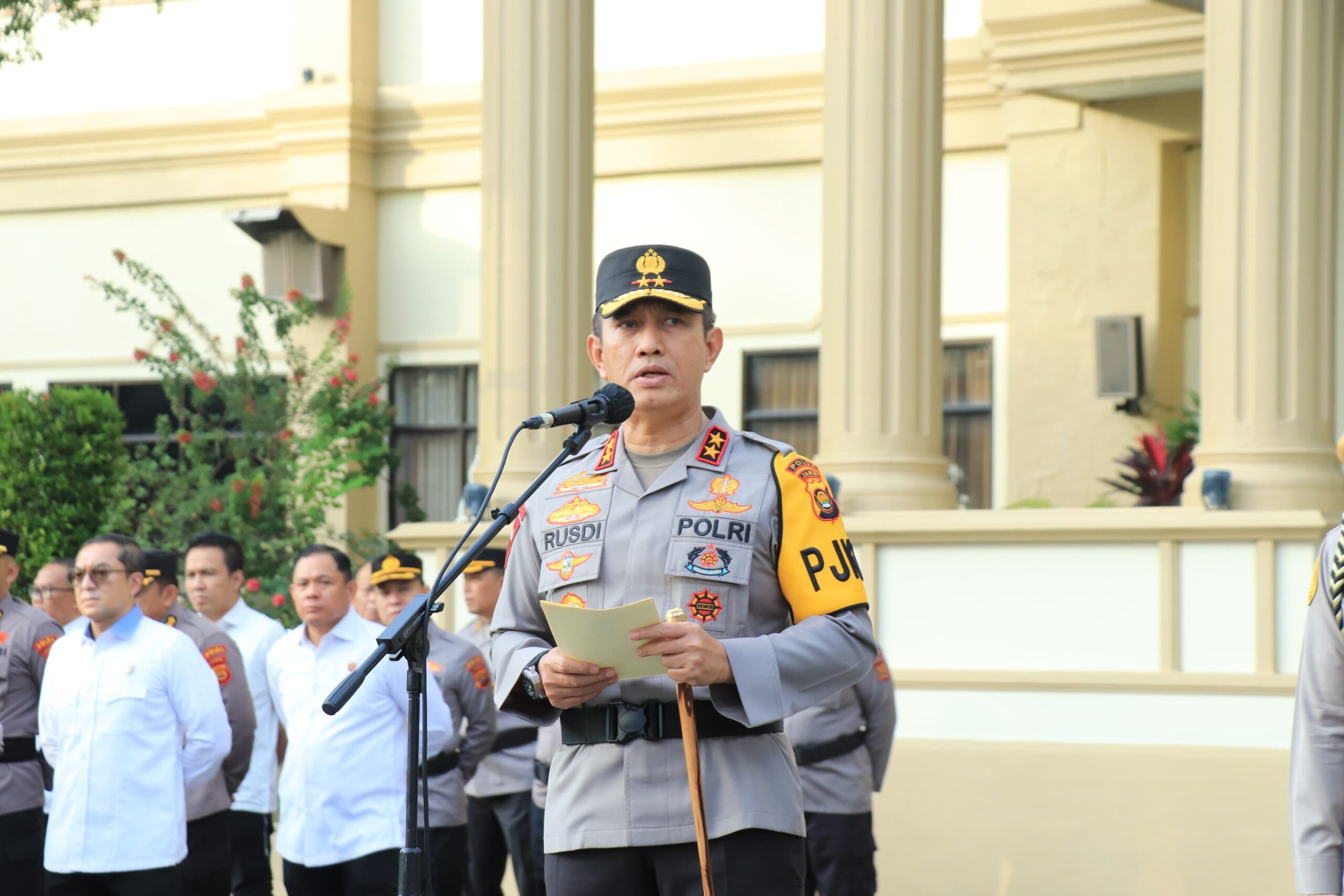 Apel tersebut dipimpin Oleh Kapolda Jambi Irjen Pol. Rusdi Hartono yang turut diikuti Wakapolda Brigjen Pol. Edi Mardianto, Irwasda Kombes Pol. Jannus P Siregar dan Pejabat Utama Polda Jambi.