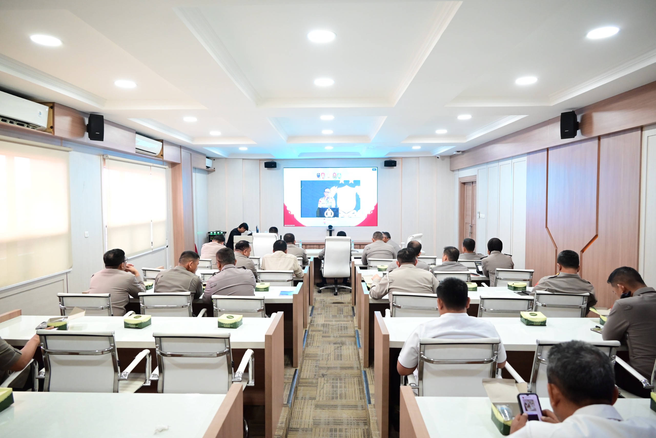 Sementara itu, jajaran Polda Jambi mengikuti kegiatan secara virtual dari Ruang Vidcon Mapolda Jambi yang dihadiri oleh Wakapolda Jambi Brigjen Pol. B. Ali, para pejabat utama, serta personel terkait lainnya.