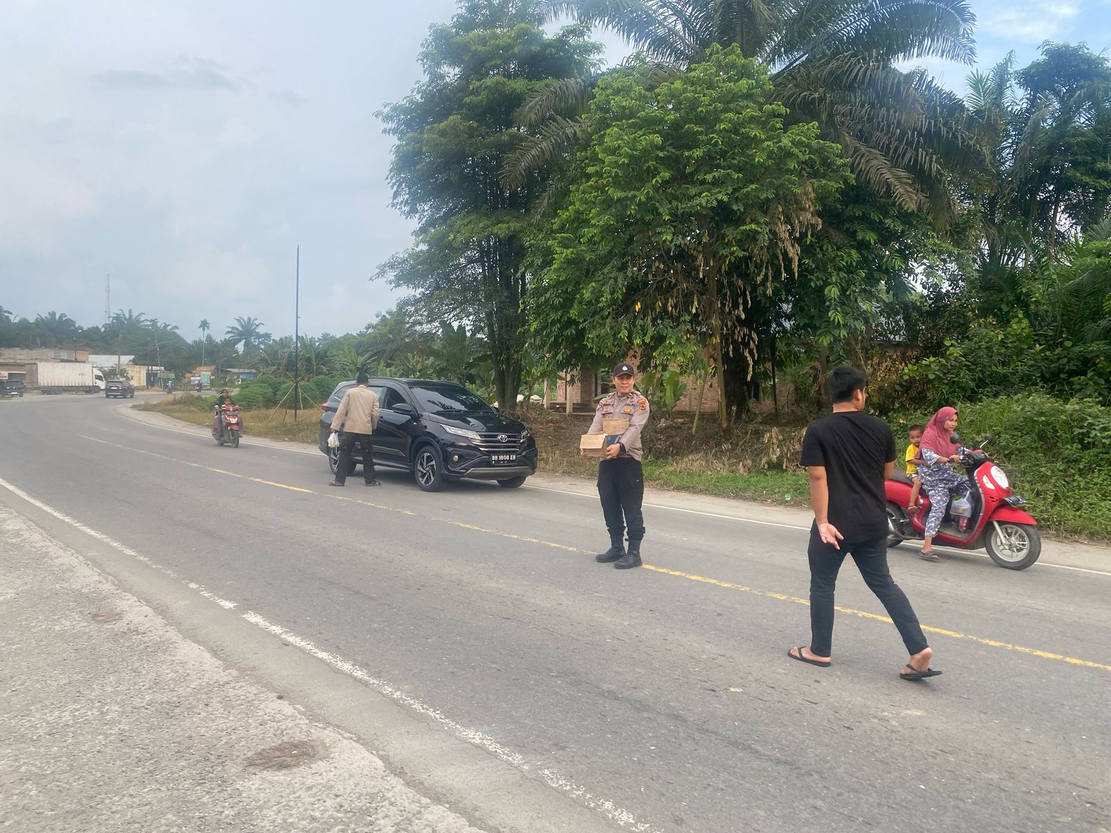 SEARAH.NET — Kepolisian Sektor (Polsek) Tungkal Uli membagikan ratusan takjil ke masyarakat dan para pemudik di Jalan Lintas Timur, Kabupaten Tanjung Jabung Barat (Tanjabbar) Jambi, Kamis (27/3/2025).
