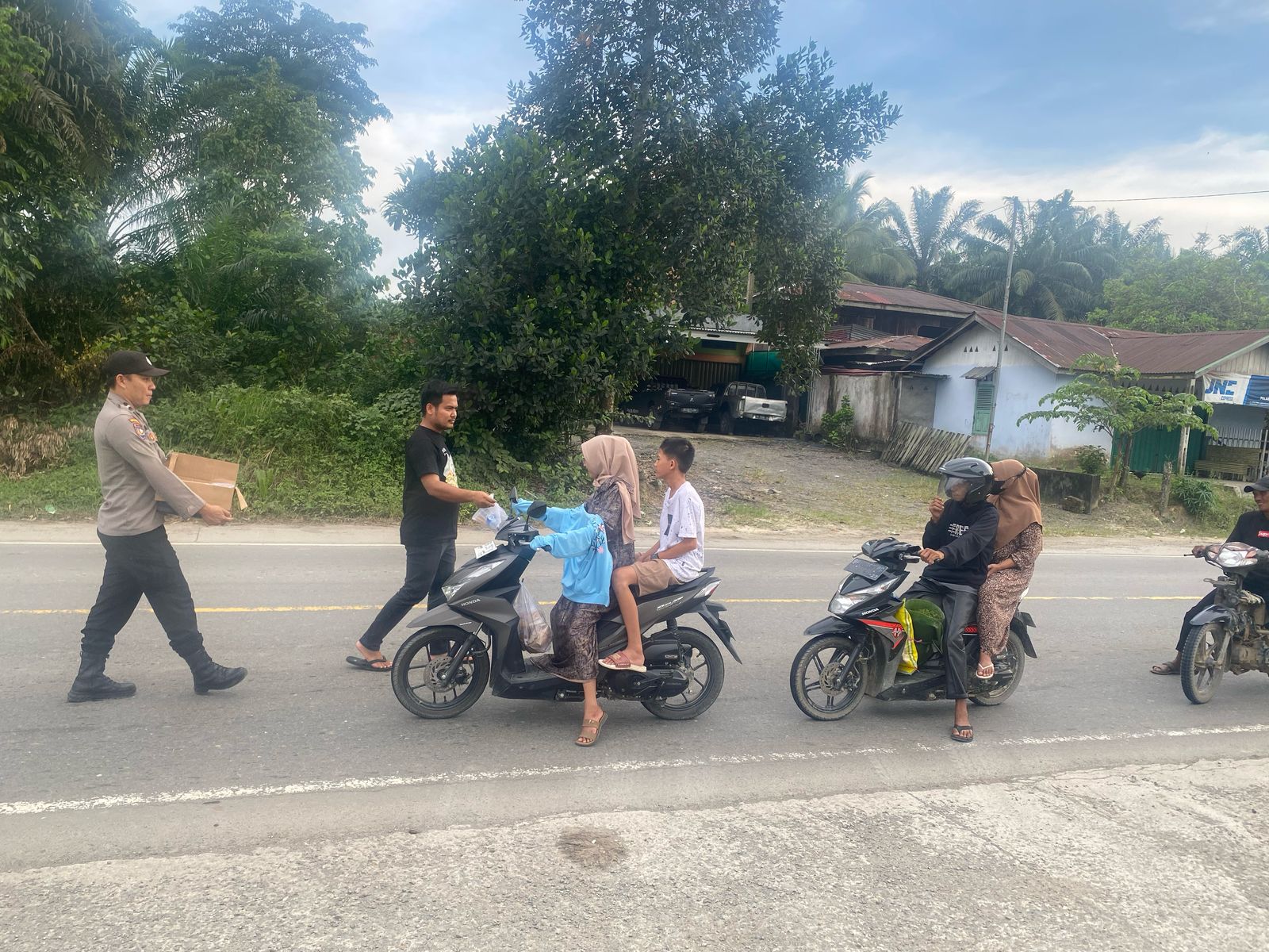 Kapolsek Tungkal Ulu AKP Windy TK MH mengatakan personil polsek membagikan langsung takjil tersebut ke pengendara yang melintas di Jalan Lintas Timur. Ia mengatakan hal ini dilakukan agar para pengendara dan pemudik bisa berbuka sambil melakukan perjalanannya.