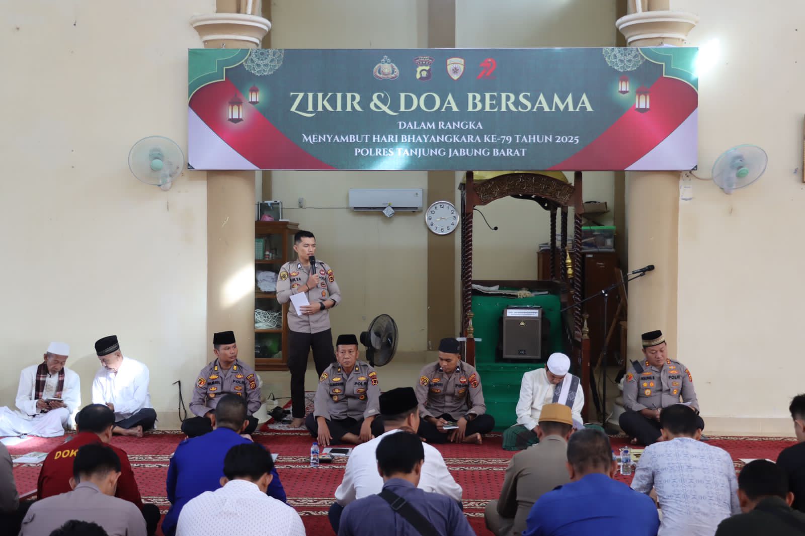 Menyambut HUT Bhayangkara ke 79 pada 1 Juli 2025, jajaran Polres Tanjab barat Kamis (19/6/2025) menggelar zikir dan doa bersama di Masjid Nur Anissa Mapolres Tanjab barat