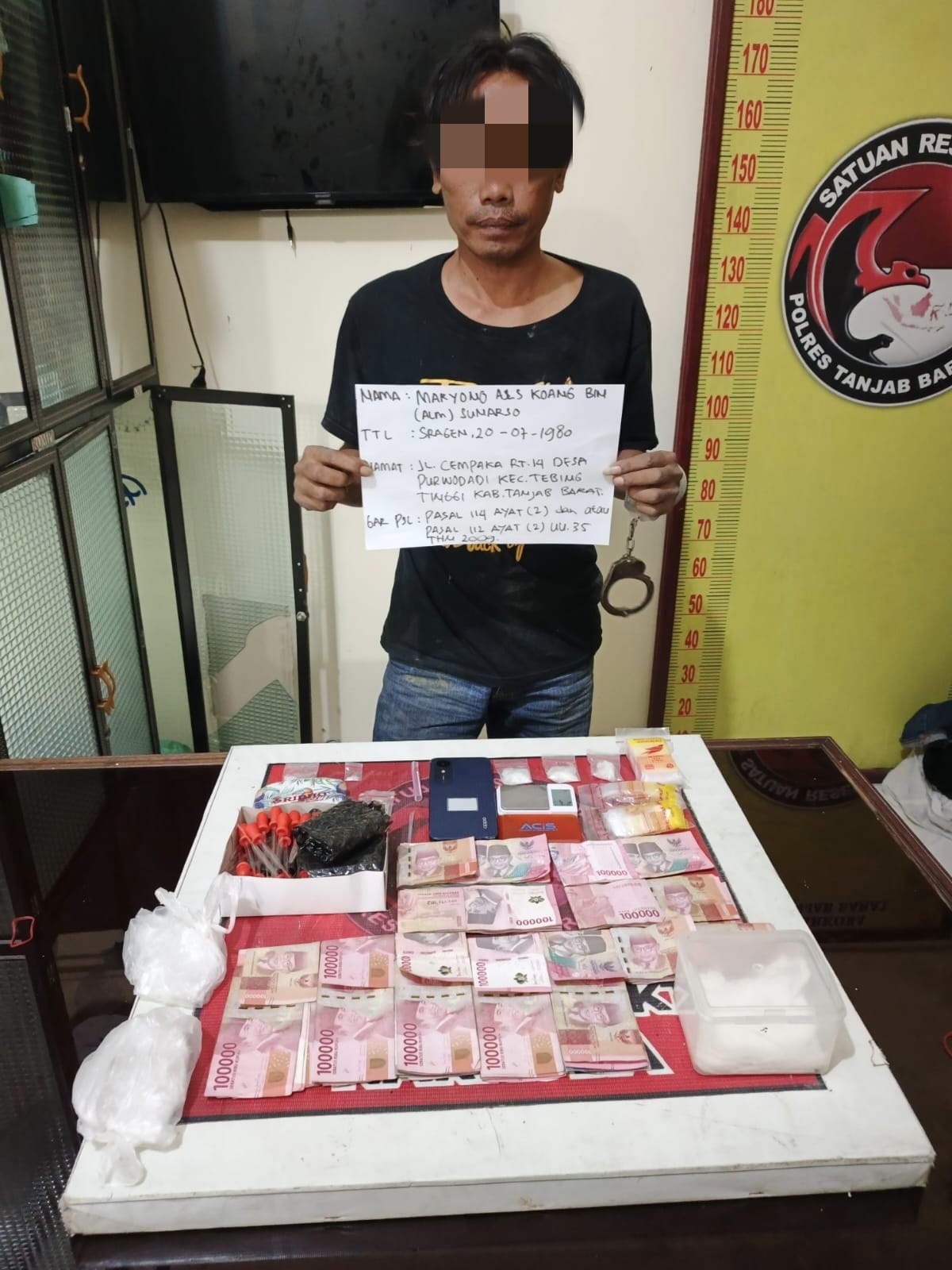 Kasat Narkoba Polres Tanjabbar AKP Agus Purba mengatakan pihaknya melakukan penangkapan terhadap tersangka atas informasi dari tim dilapangan. Jika tersangka kerap mengedarkan narkoba jenis sabu di Desa Purwodadi.
