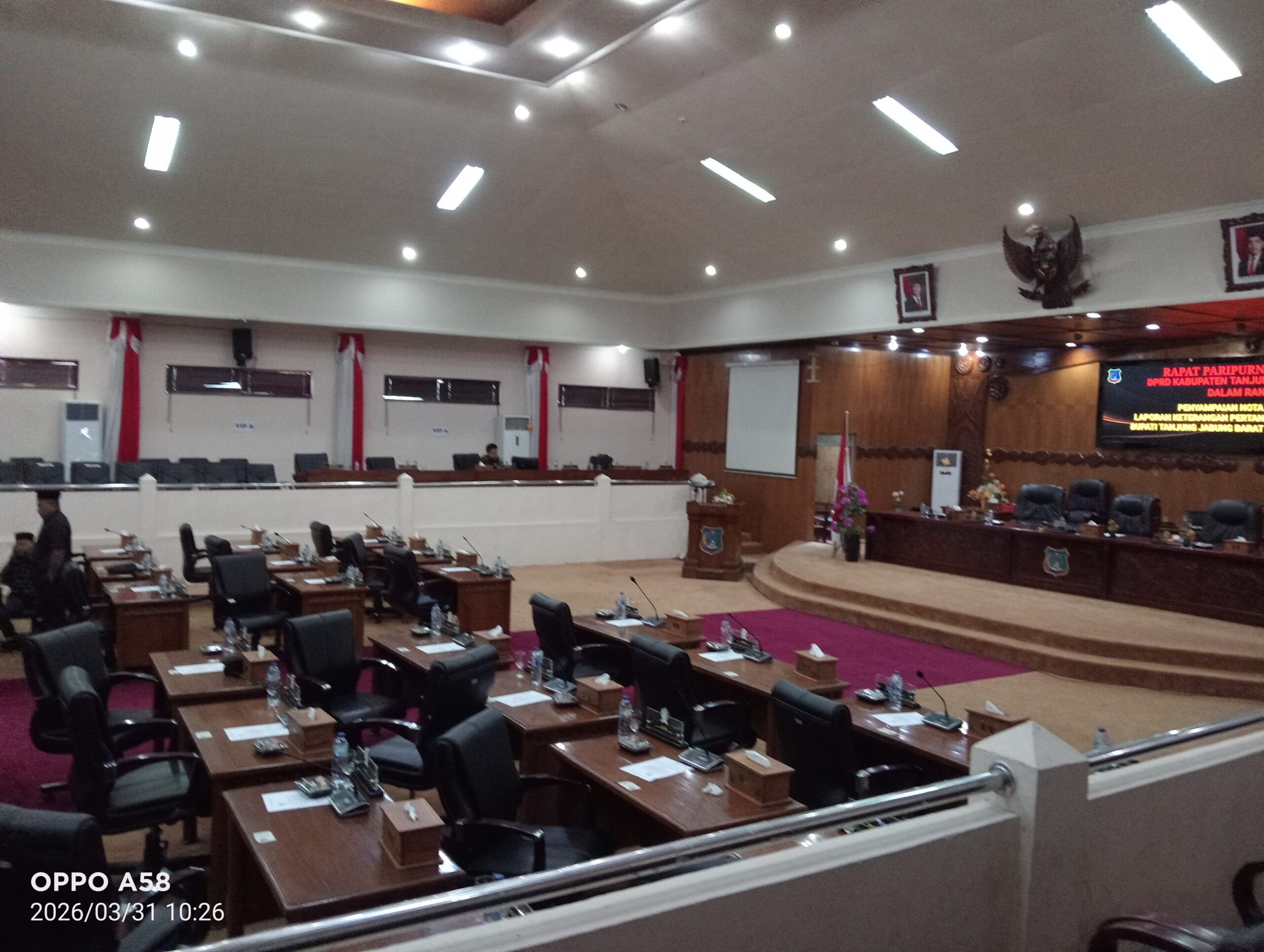 Hal ini dikarenakan banyak anggota DPRD Tanjabbar tidak hadir dalam paripurna yang digelar, Selasa (31/3/2026).