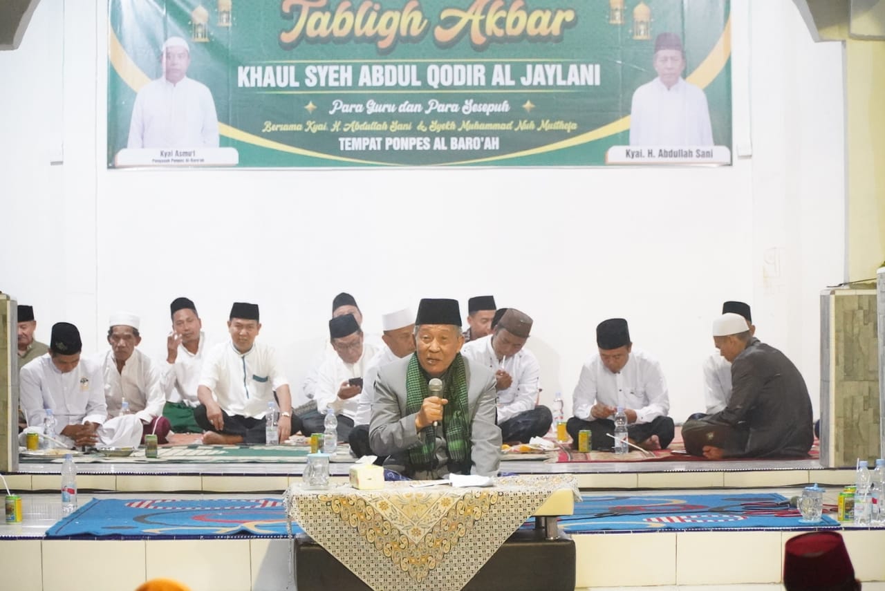 Hal tersebut disampaikan Wagub Sani dalam Mau’idzah Hasanah nya pada Peringatan Haul Syekh Abdul Qadir Al-Jailani serta Para Guru dan Sesepuh di Pondok Pesantren Al Baro’ah, Desa Kasang Pudak, Kecamatan Kumpeh Ulu, Kabupaten Muaro Jambi, Minggu (02/11/2025) malam.