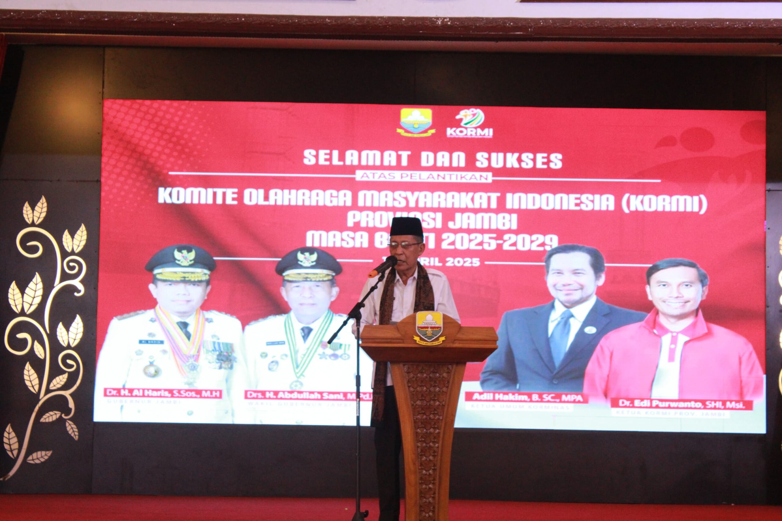 “Atas nama Pemerintah Provinsi Jambi, saya ucapkan selamat kepada seluruh pengurus KORMI Provinsi Jambi yang hari ini akan melaksanakan pelantikan untuk masa bakti 2024 – 2029. Saya berharap seluruh pengurus yang telah dilantik dapat melaksanakan tugas dengan penuh tanggung jawab dan amanah, sesuai dengan tugas pokok dan fungsinya,” ucap Wagub Sani.